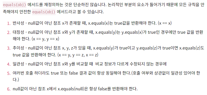 [심화] equals 메서드를 재정의 하는 규칙